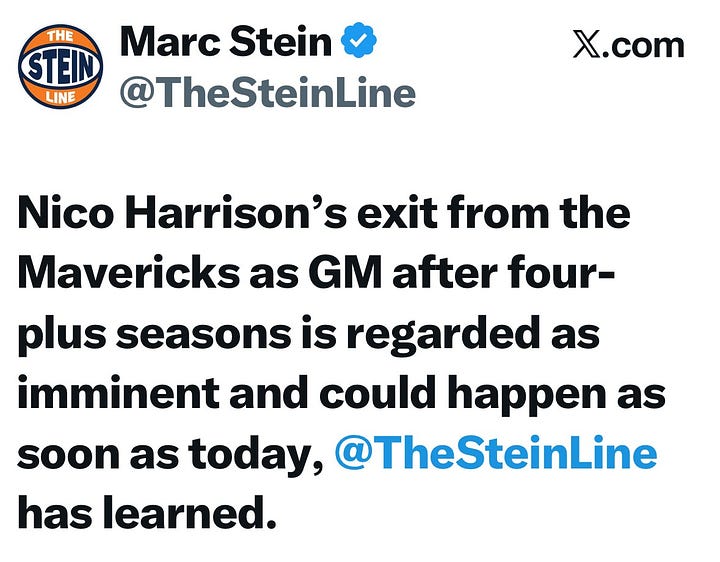 Some two hours after a tweet from The Stein Line that the move was imminent, Harrison was formally fired by Dumont with the Mavericks in the midst of a 3-8 start amid a very soft early schedule. Even with the presence of Cooper Flagg on the roster via a draft lottery miracle in May that delivered the No. 1 overall pick to Dallas, those early struggles and the fan dismay they quickly reignited snuffed out any remaining hope that the former Nike executive had for salvaging his name in North Texas.